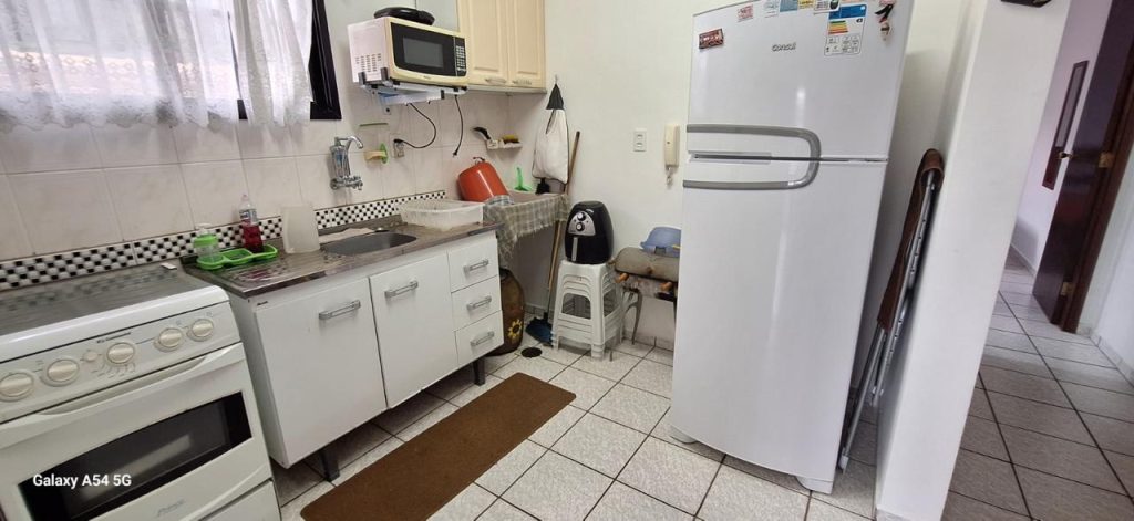 Apto em condomínio, com 01 dormitório, sala com sacada, cozinha e banheiro com box de acrílico.