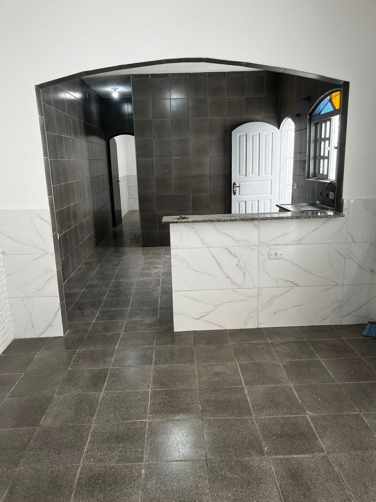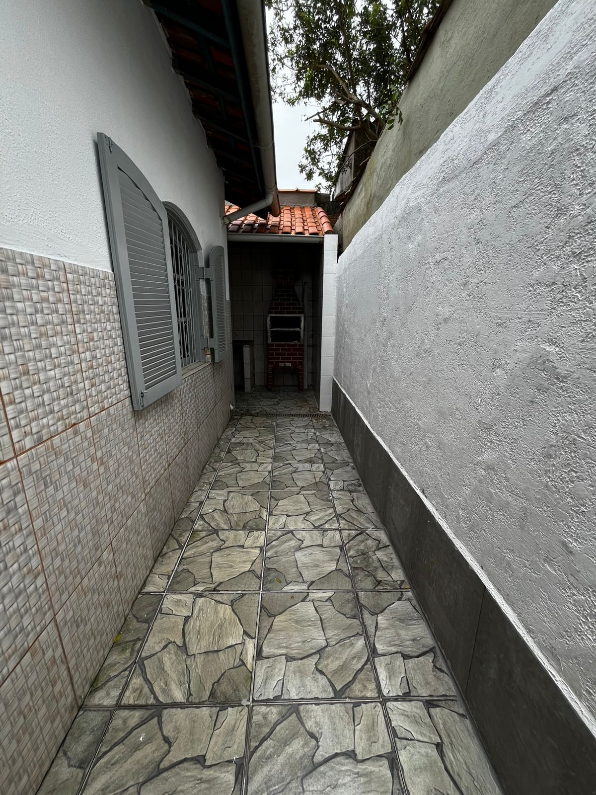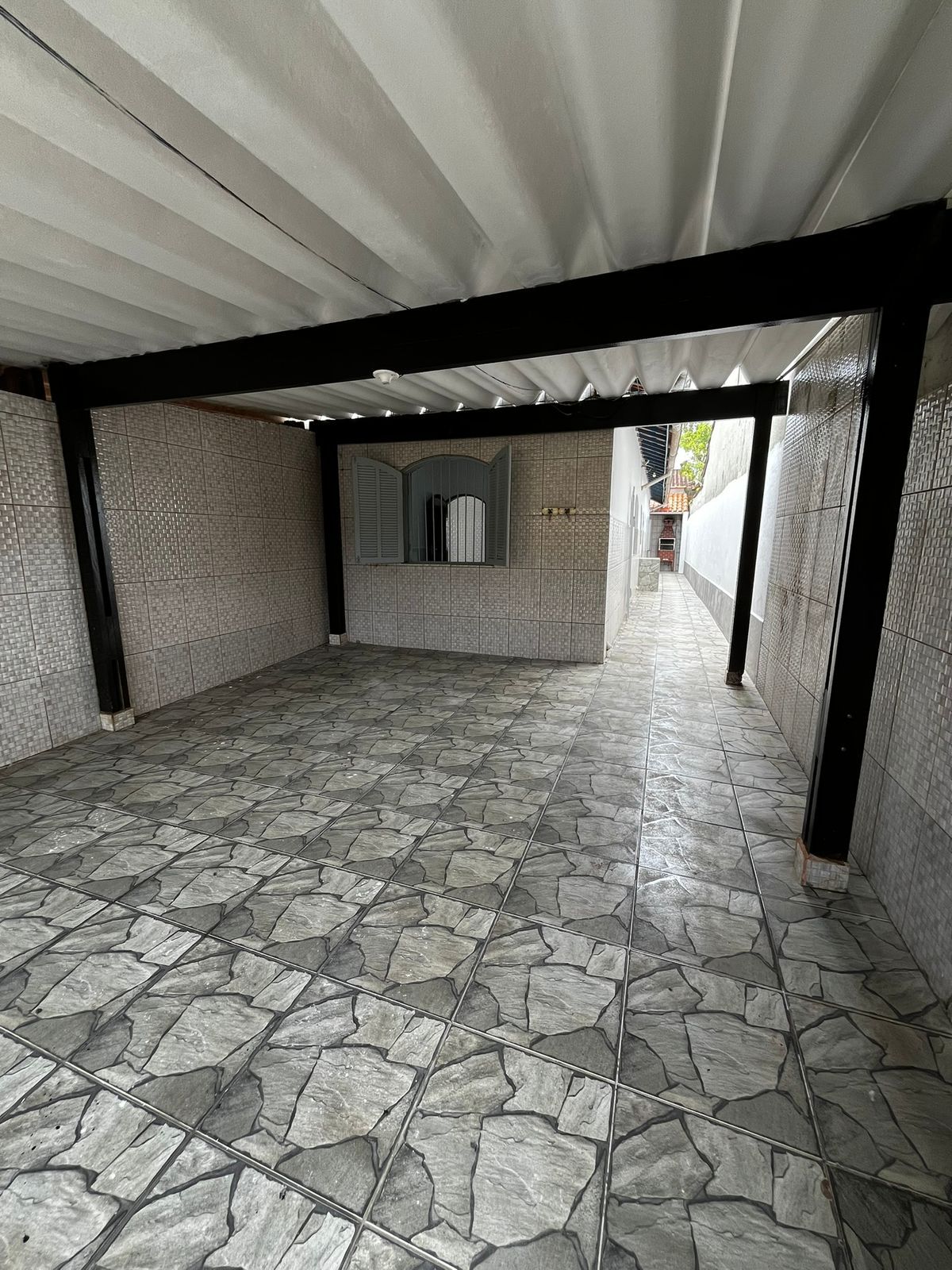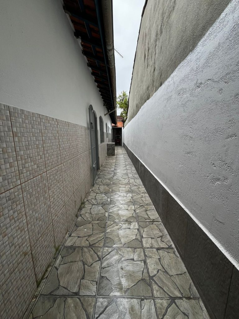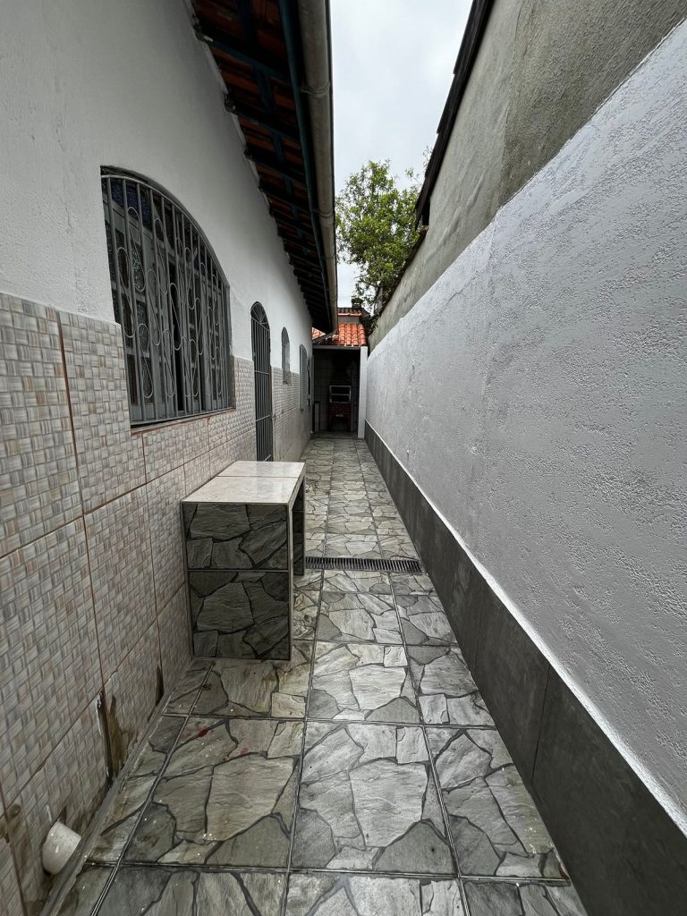 Muros todo revestido. Garagem fechada e coberta para 02 carros.