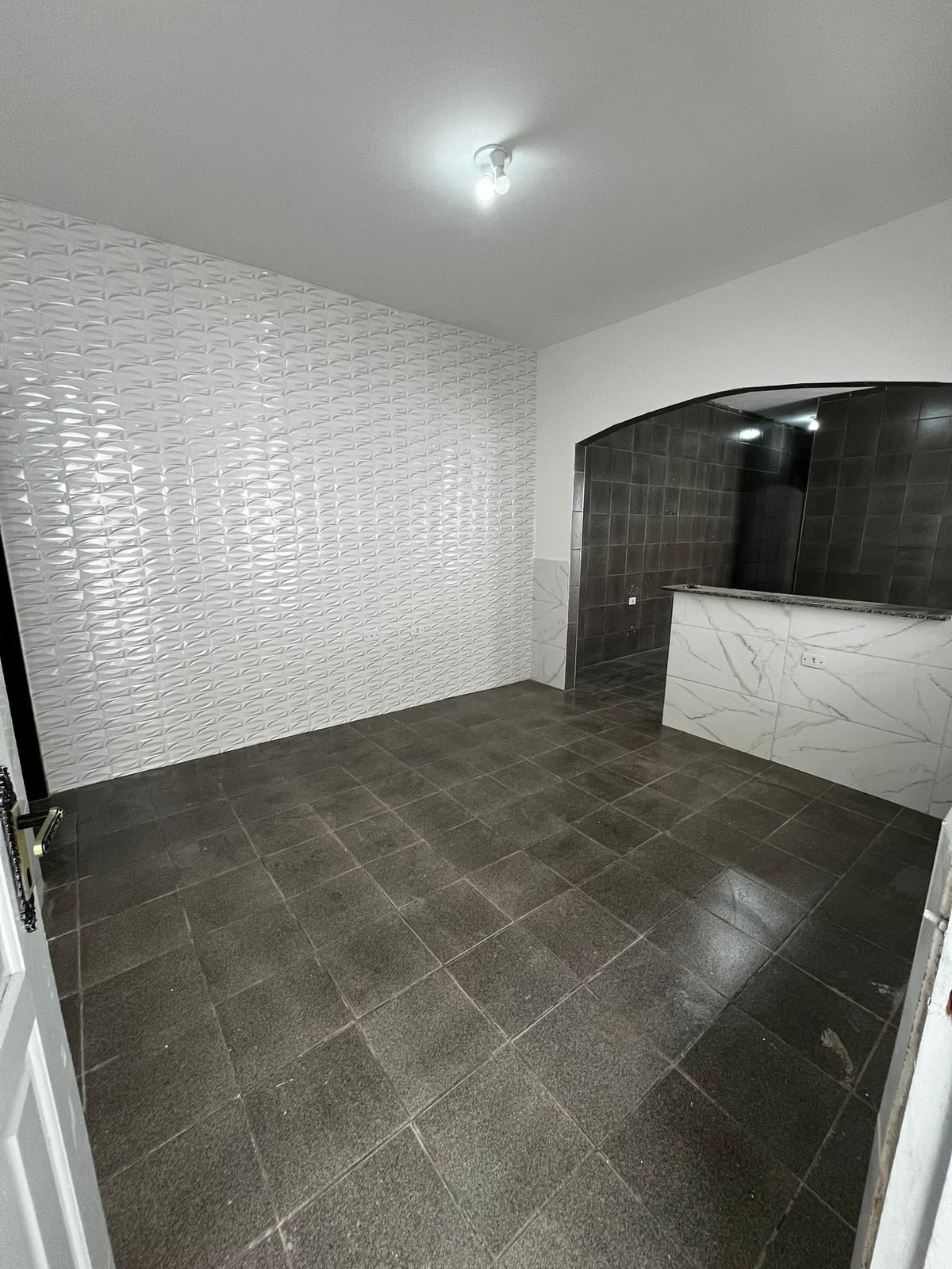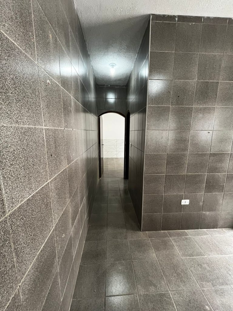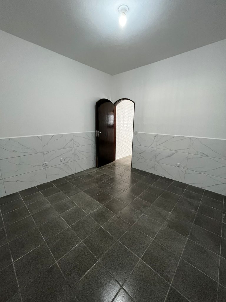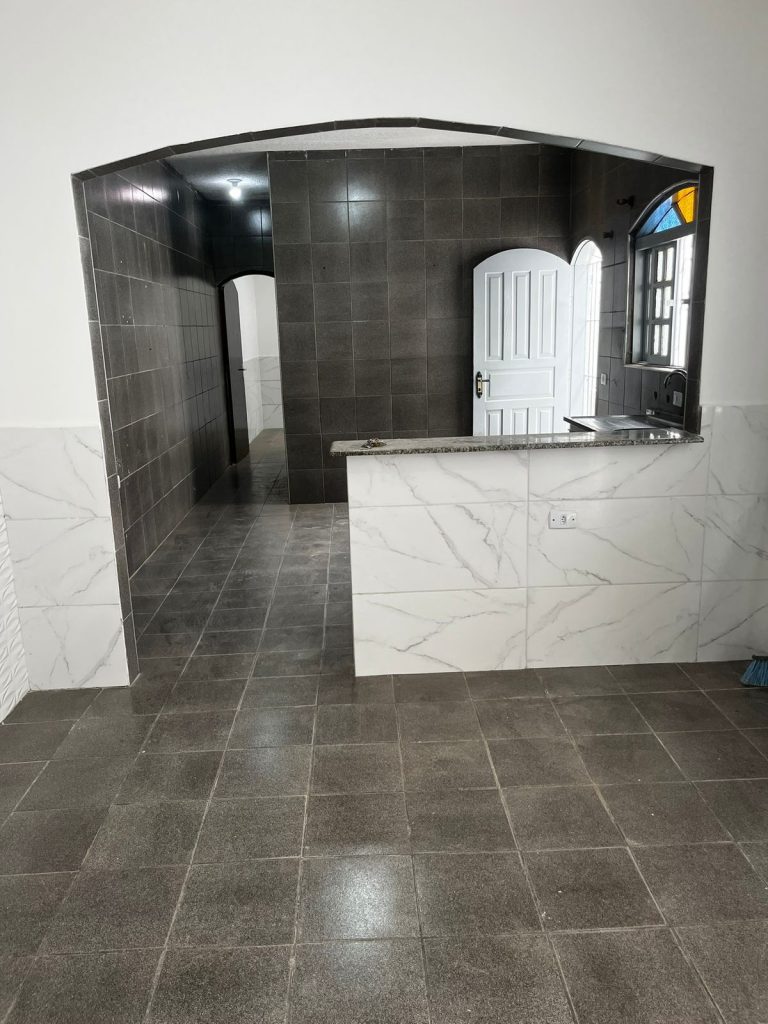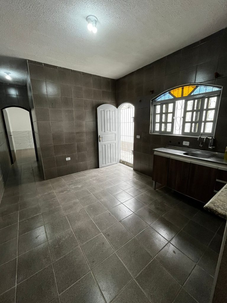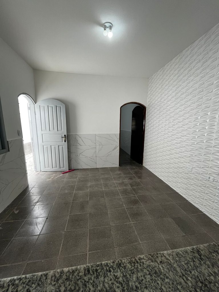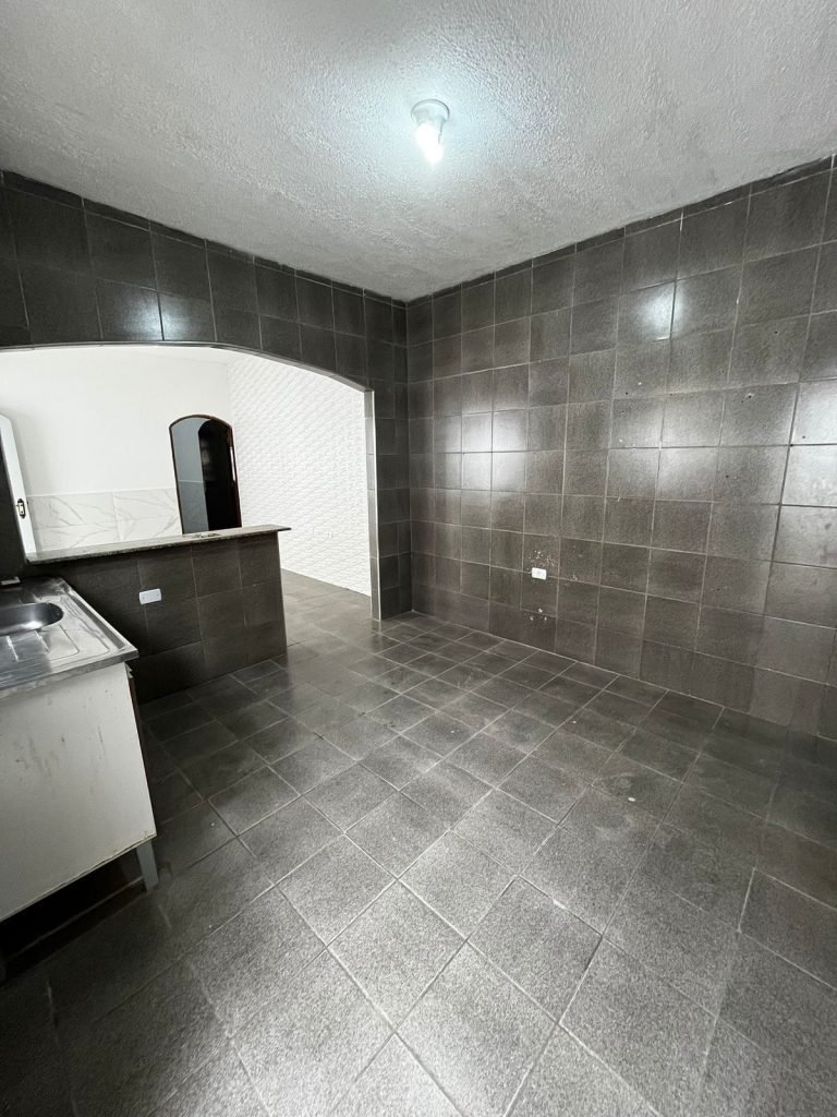 Casa geminada com 02 dormitórios, sala com cozinha americana, banheiro com box de acrílico.