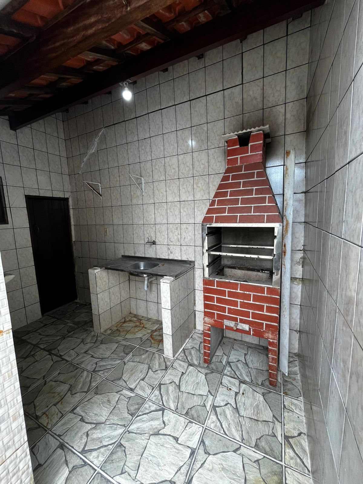 Nos area com churrasqueira, pia e area de serviço.